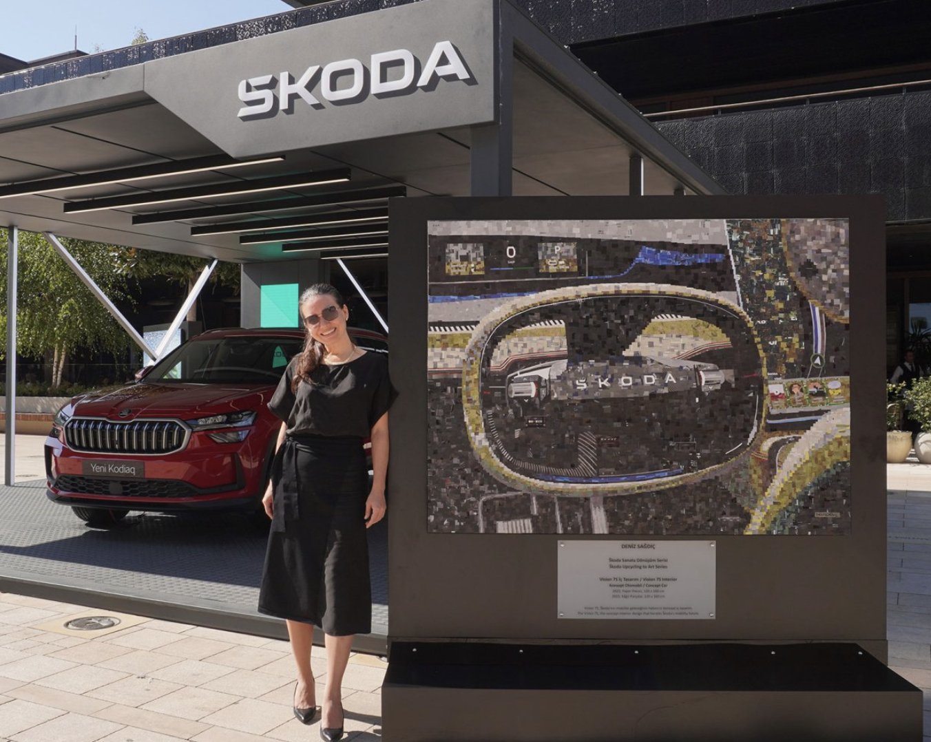 Sürdürülebilirlik noktasında kendini aracı bir konumda gördüğünü belirten Deniz Sağdıç, “Yüce Auto-Škoda ile bir dil ve bir hikâyenin görselini oluşturma fikriyle buluştuk. Kendi bünyelerinde biriktirdikleri kurumsal atıklarını nasıl değerlendirebileceğimize karar verirken, Škoda’nın 130 yıllık geçmişi de yolumuza ışık tuttu. Markanın 1894 yılında ürettiği ilk modeli nasıldı, günümüzün en güncel elektrikli Škoda otomobili nasıl, gibi soruları yanıtlayacak eserleri; atık broşür, tente, afiş ve karton gibi materyallerle hazırladık. Asıl amacım olan gelecek nesillere daha temiz ve güzel bir dünya bırakmak hedefim için Yüce Auto-Škoda’ya desteklerinden ötürü minnettarım.” dedi.